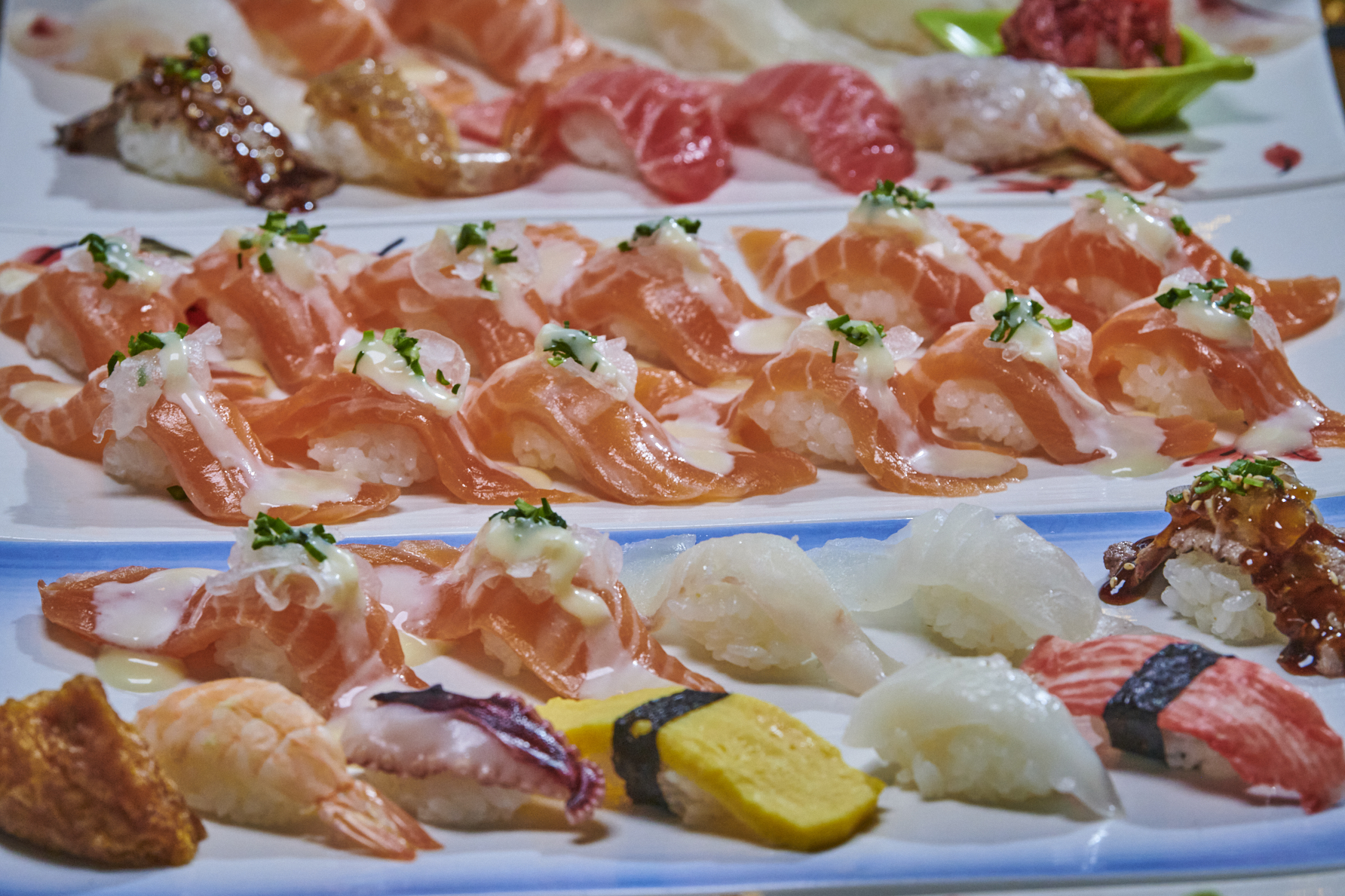 드디어 메인 초밥들이 등장했습니다. 윤기가 좌르르 흐르는 초밥들을 보니 저절로 카메라가 손에 들리더군요. 이건 뭐, 예술이 따로 없었습니다!